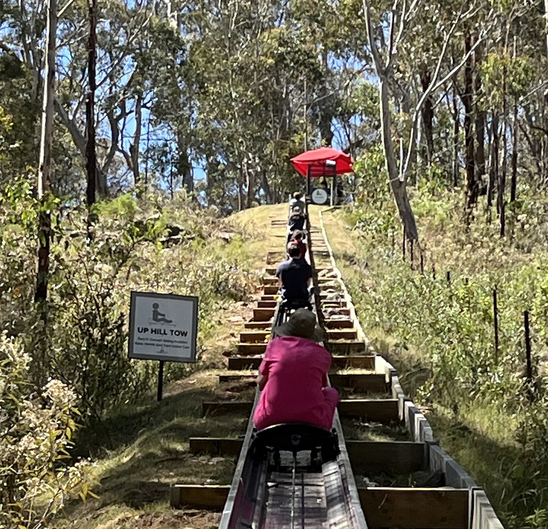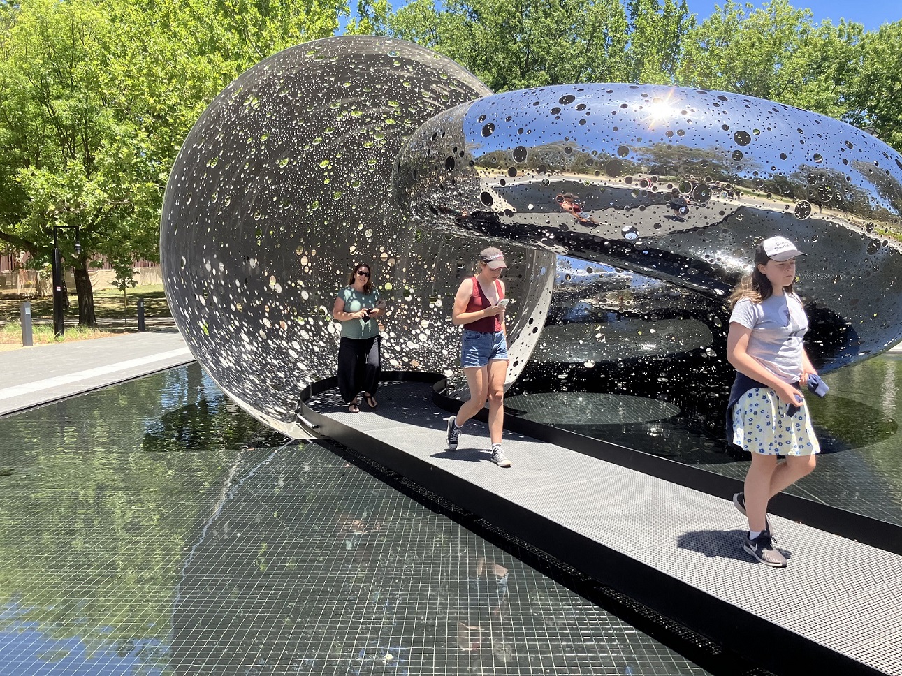 Being the capital, there is a lot to do in Canberra, and unlike the kids, we were not thinking phones and books. Hence the next day, we visited to a National Geographic photo-of-the-year exhibition and went to the free sculpture garden, where the best piece was a snake eating its own tail, which we could walk into. We topped it off with cake and a park with a long slide in nearby Corin Forrest.