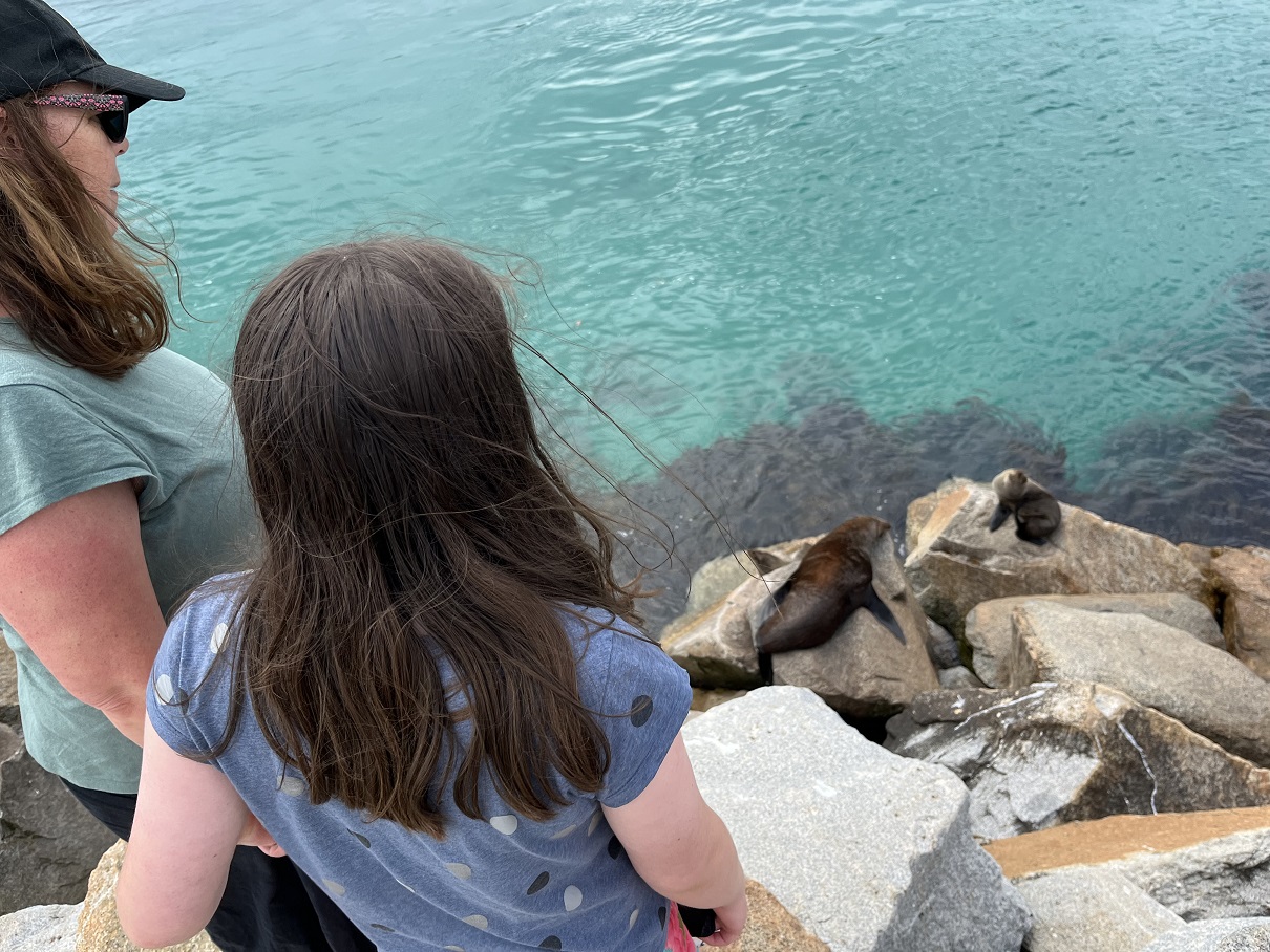 ride took ten minutes. Underwater visibility was perfect. We could swim to the seals, who let us approach them within meters and who often swam beneath us. It was amazing. Dad especially like the big seals swimming underneath. The second swim for Piet and Emma was snorkeling, which actually gave them a better view of the seals!